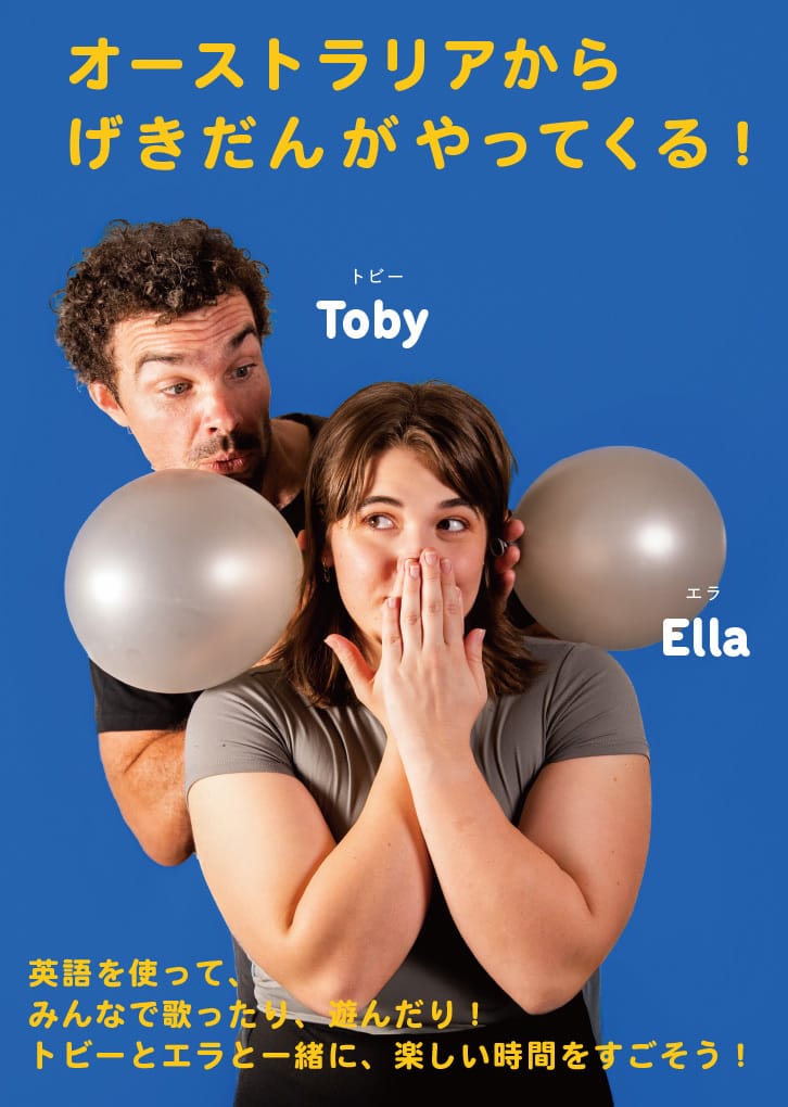オーストラリアから招いた二人組が、観客を舞台に引き込む参加型演劇をお届けし、英語への意欲と舞台のワクワクを呼び起こします。